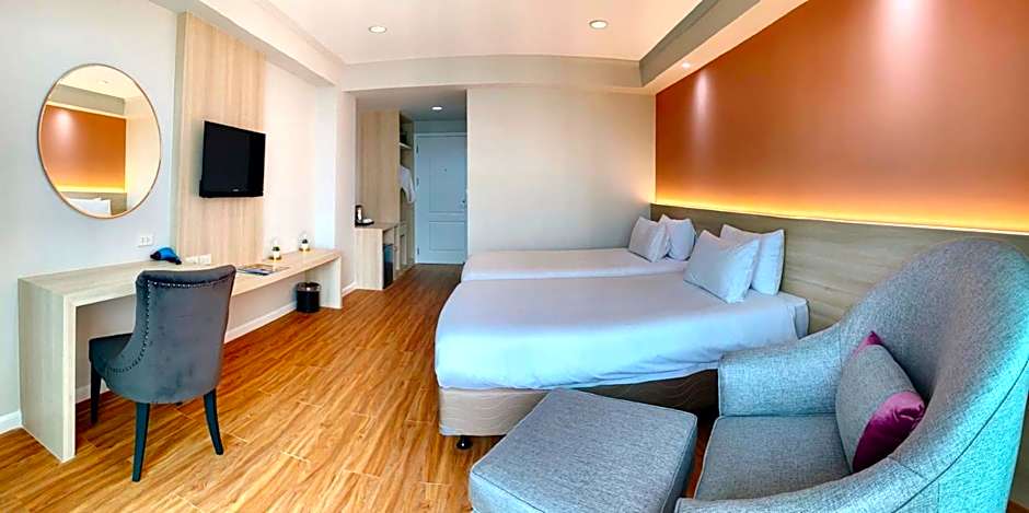 The spacious twin/double room features air conditioning, soundproof walls, a terrace with city views as well as a private bathroom boasting a walk-in shower.